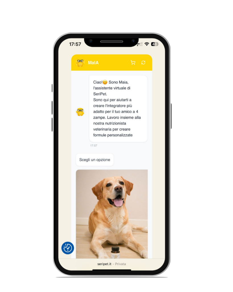 Con pochi dati mirati come peso, età, stile di vita, esigenze specifiche, MaIA elabora una combinazione precisa di ingredienti attivi.